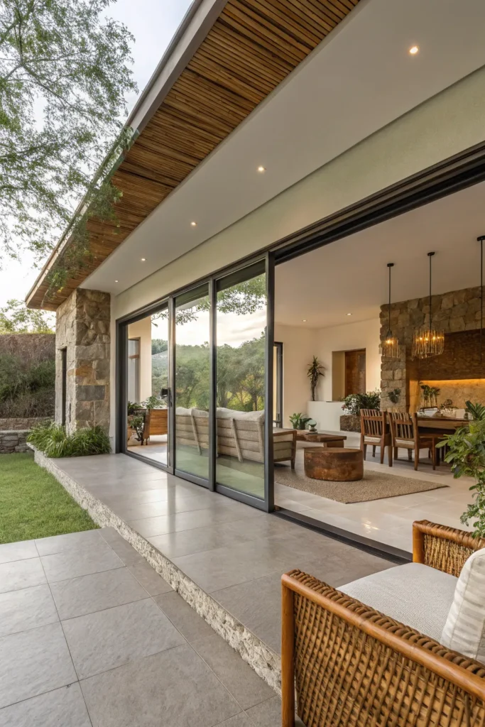 - Black-framed glass doors to connect indoor and outdoor spaces