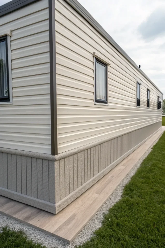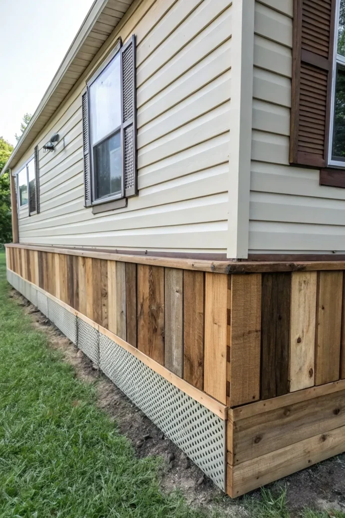Vinyl skirting is a popular and budget-friendly option. It offers clean lines, low maintenance, and easy installation, making it perfect for first-time homeowners or simple upgrades. It also comes in many textures, from smooth to vented options that improve airflow.