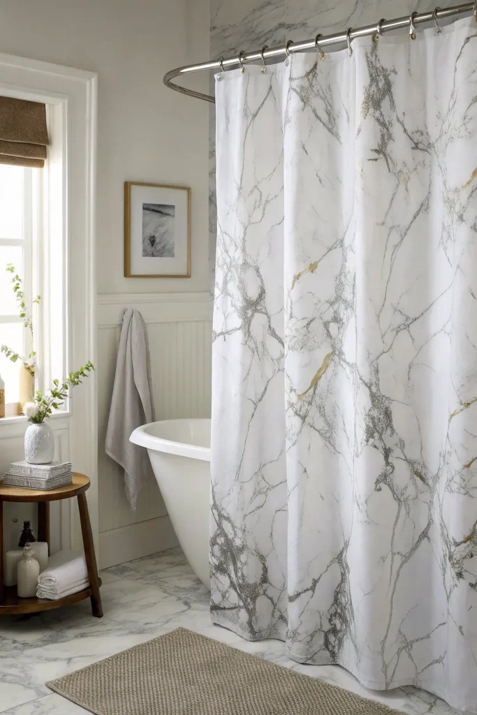 Bring a touch of luxury with marble-printed curtains that echo the elegance of natural stone.