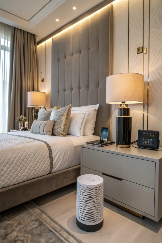 A modern bedroom often integrates smart features effortlessly. Consider adding smart lighting, automated curtains, stylish wireless chargers, or Bluetooth speakers built into bedside lamps. This enhances convenience while keeping cords and clutter out of sight. The goal is to embrace technology without letting it disrupt the clean aesthetic.
