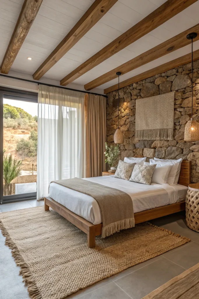 While modern design leans toward sleekness, natural materials help soften the look. Incorporate wood, stone, linen, rattan, or woven textiles to bring warmth and balance. A wooden bed frame, linen curtains, or a natural-fiber rug can add organic texture that keeps the room from feeling too cold or stark.