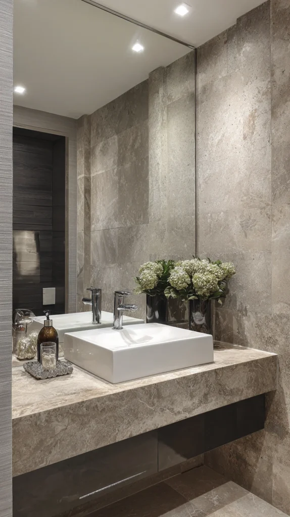 Consider guest experience ensuring powder rooms feel welcoming rather than uncomfortably theatrical, provide essential amenities including adequate counter space and thoughtful storage for supplies, and maintain cleanliness through easy-clean materials and surfaces that don’t show every water spot or smudge.
