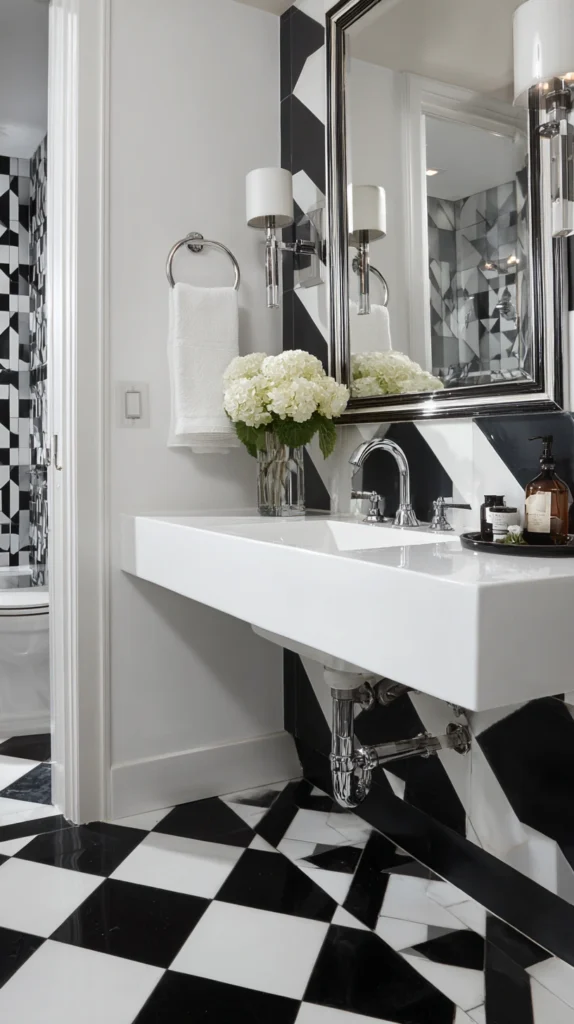 Create timeless drama through high-contrast black and white floor or wall tile featuring geometric patterns, classic checkerboard, or contemporary designs establishing graphic visual impact. Install bold floor patterns using contrasting tiles in geometric arrangements, create accent walls using patterned tile making statements without overwhelming entire rooms, or embrace full wall coverage establishing complete immersive environments.