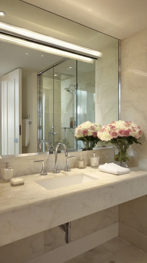 Choose mirrors extending nearly wall-to-wall and floor-to-ceiling maximizing reflective surface and spatial effects, select frames in materials and finishes making statements whether ornate gold, sleek black, or natural wood, or embrace frameless options maintaining contemporary minimalism.