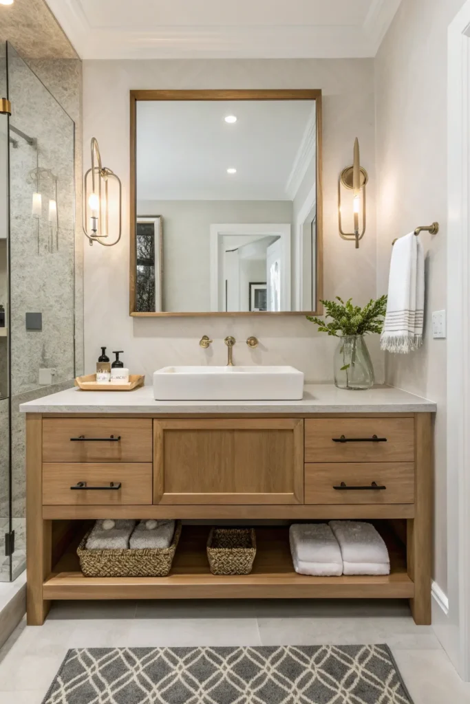 Modern design often leans toward clean lines and functional decor. Keep accessories minimal yet impactful: a stylish soap dispenser, a single vase with fresh greenery, or a sleek tray for essentials. Choosing high-quality finishes and materials allows even small items to contribute to the room’s high-end feel without cluttering the space.