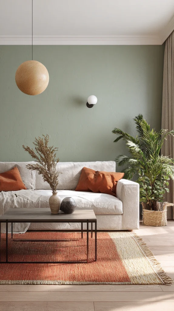 The sage green and terracotta pairing is one of the most successful and most reliably beautiful colour combinations in modern interior design. The cool botanical green and the warm earthen orange sit on opposite ends of the warm-cool spectrum and create a tension that makes both colours more interesting than either would be paired with a neutral.