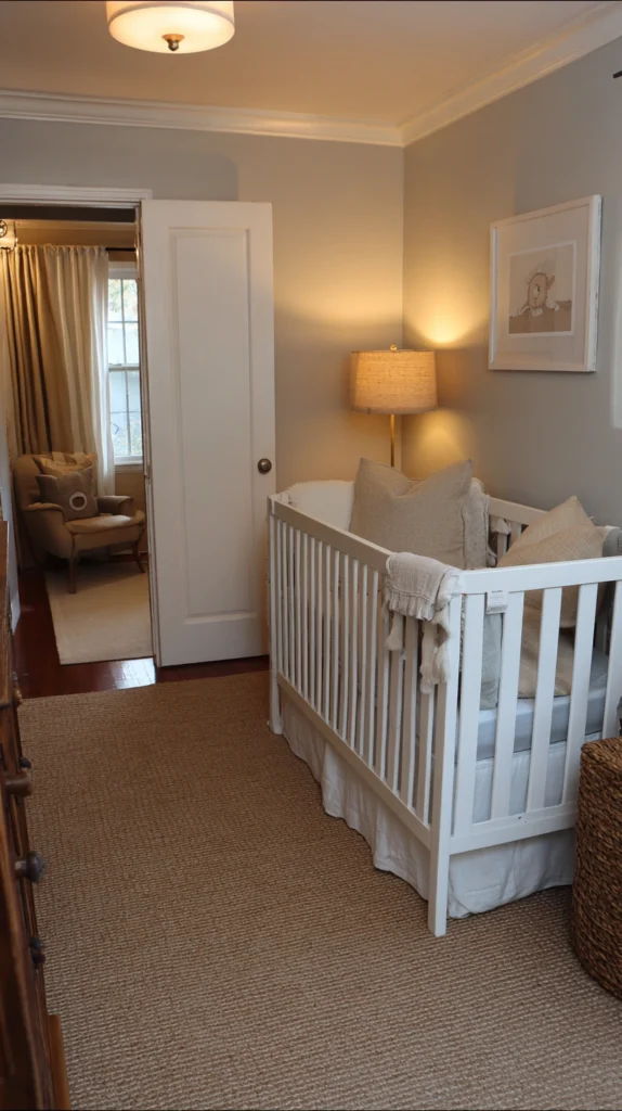 The neutral approach ensures spaces remain calming for adults while providing perfectly adequate environments for infants who don’t require stimulating colorful surroundings in sleeping spaces. Reserve brighter colors for daytime play areas in other rooms if desired.
