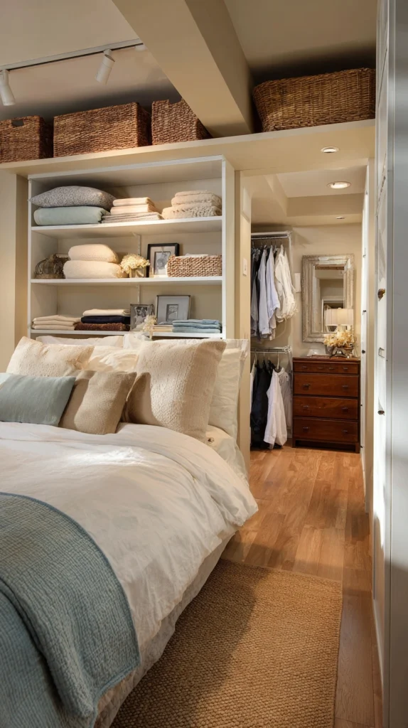 Store baby supplies in attractive containers matching bedroom storage systems, display minimal baby items keeping surfaces relatively clear, and edit baby gear ruthlessly keeping only essentials in shared bedrooms. The coordinated approach ensures rooms remain restful adult sanctuaries despite accommodating infant occupants.
