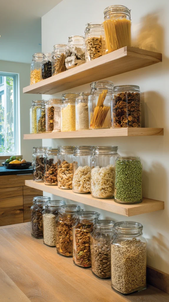 Clutter-free open shelving becomes easier when you invest in quality storage containers, dishes, and accessories worth displaying. Beautiful glass canisters with wooden lids, handmade ceramic containers, and well-designed serving pieces elevate everyday storage into decorative elements.
