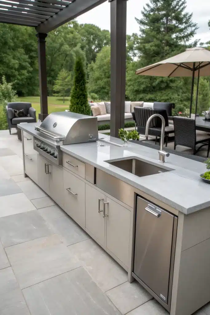 Adding a sink outdoors means no more running inside for water. Pair it with a prep counter, and suddenly the whole space feels more functional.