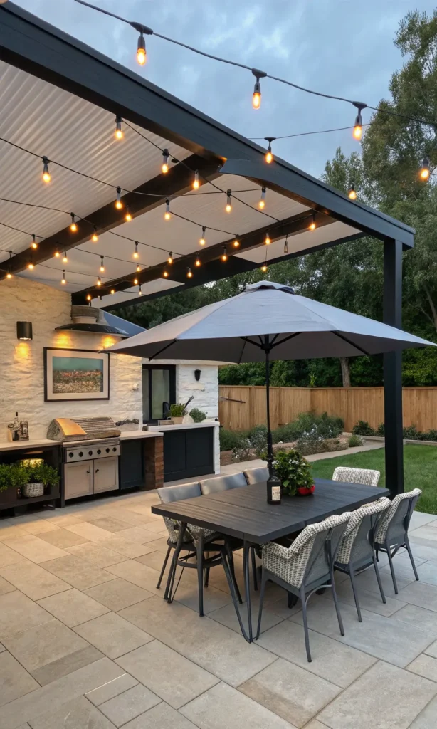 Pair the dining area with string lights for evening meals. It ties everything together into one seamless entertaining zone.