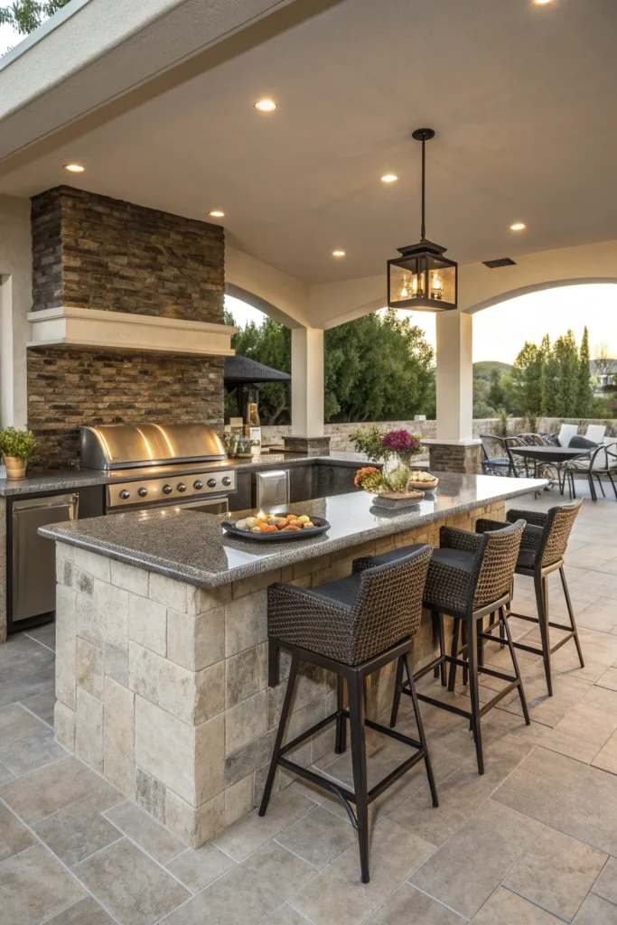 Solar or LED options keep things eco-friendly while still stylish. With the right lighting, your outdoor kitchen becomes just as welcoming at night as it is during the day.