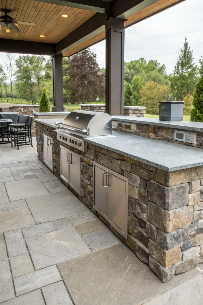 Outdoor countertops need to withstand the elements. Stone options like granite, slate, or concrete not only hold up but also bring a modern, natural look.