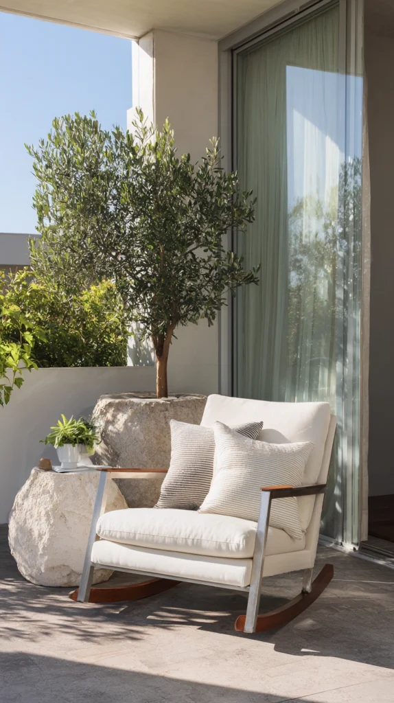 Add simple solid-color cushions providing comfort without pattern distraction, position single modern side tables maintaining the minimal aesthetic, and resist the temptation to over-accessorize. The contemporary approach updates the classic rocking chair concept creating fresh interpretations suitable for modern architecture.