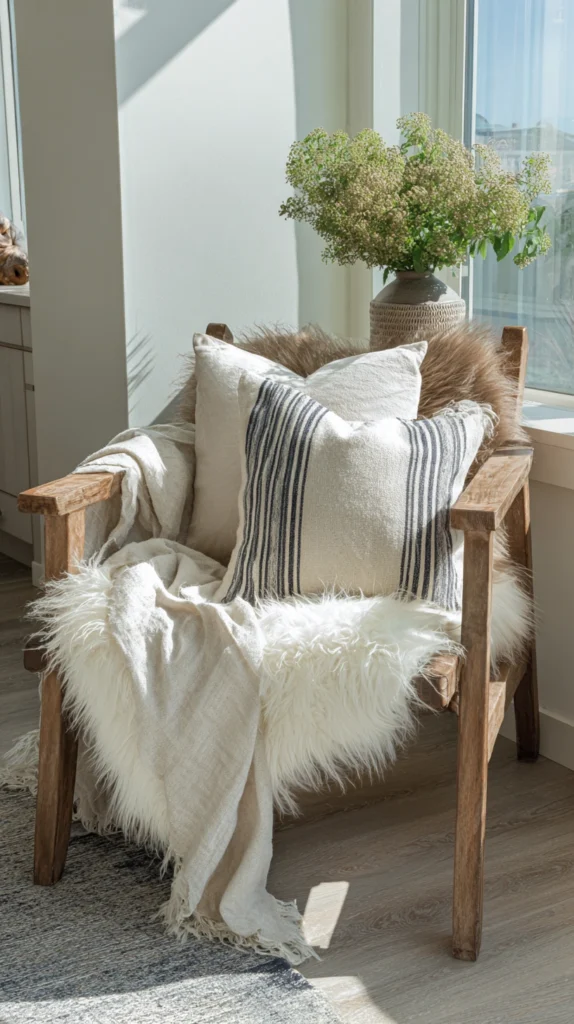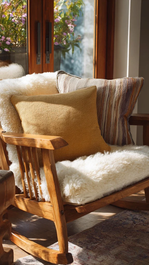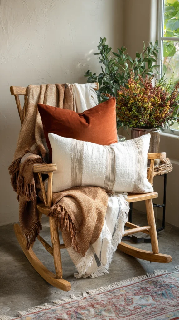The seasonal rotation demonstrates ongoing care and prevents rockers from becoming invisible through excessive familiarity. Store off-season textiles properly ensuring they remain clean and ready for future use while the regular changes provide opportunities to refresh arrangements and introduce new styling ideas.