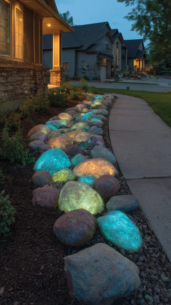 The glowing rocks charge during daylight through sun exposure then emit gentle light after dark creating the kind of magical surprise that delights viewers. Position where they receive adequate sun exposure ensuring sufficient charge for evening luminescence.