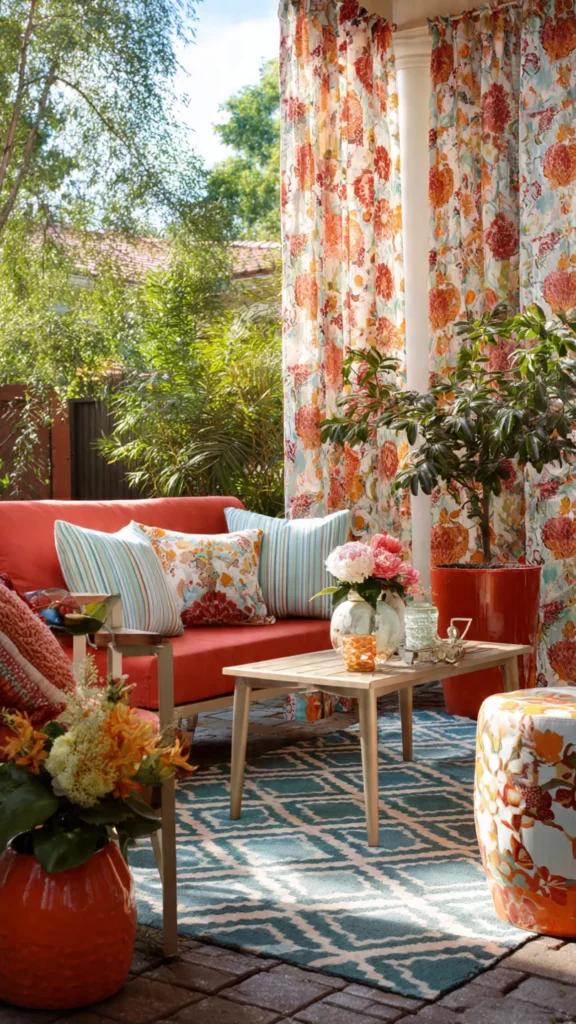 When choosing patterns, consider the colors already present in your furniture and cushions so everything feels cohesive. Even a bold print can work beautifully if it echoes other elements in the space, turning your patio into a lively and expressive outdoor room.