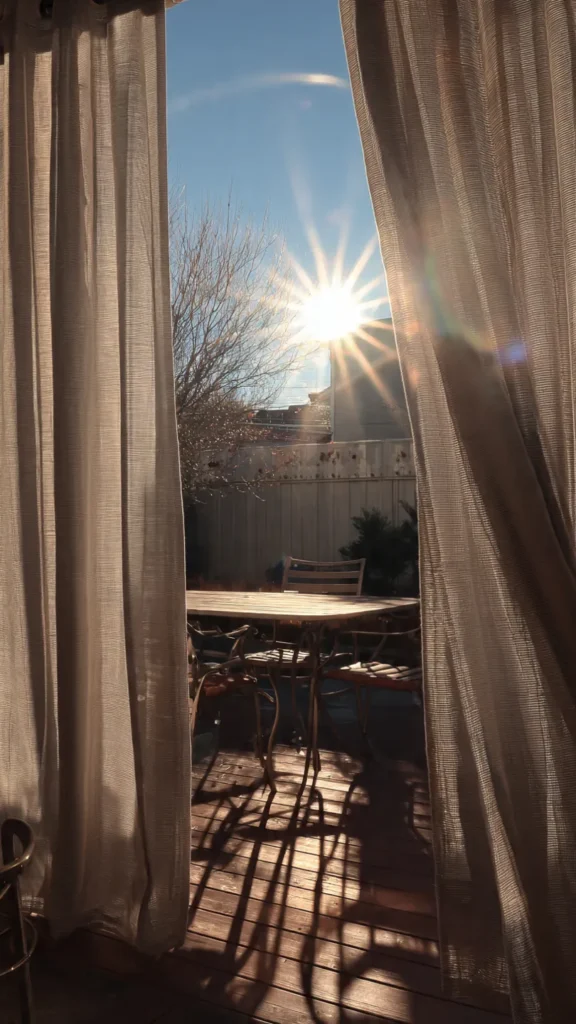For patios that face strong afternoon sun, blackout or sun-blocking curtains are a lifesaver. These fabrics significantly reduce heat and glare, making it possible to enjoy your patio even during the hottest parts of the day.