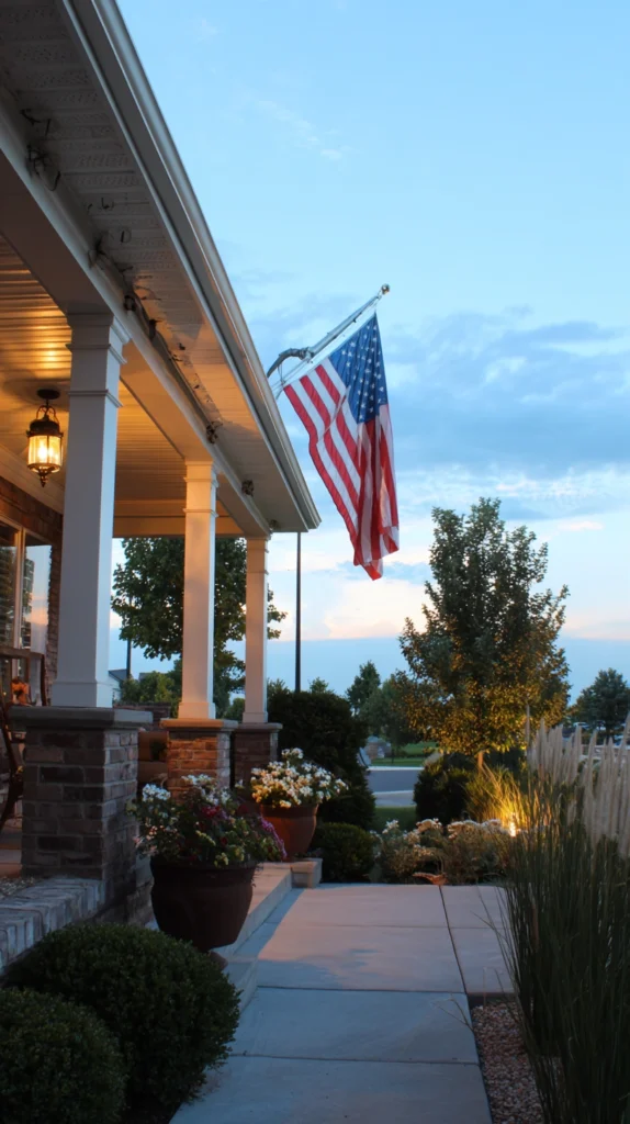Honor the holiday appropriately by displaying the American flag properly on a flagpole, porch mount, or garden stake following correct flag etiquette and placement. Ensure flags are in good condition without tears or excessive fading, flying them at half-staff until noon on Memorial Day then raising to full staff. Position flags where they’re visible from the street creating neighborhood-wide displays of patriotism and remembrance. Add landscape lighting directed upward illuminating flags during evening hours if you choose to display them after sunset per proper flag protocols.