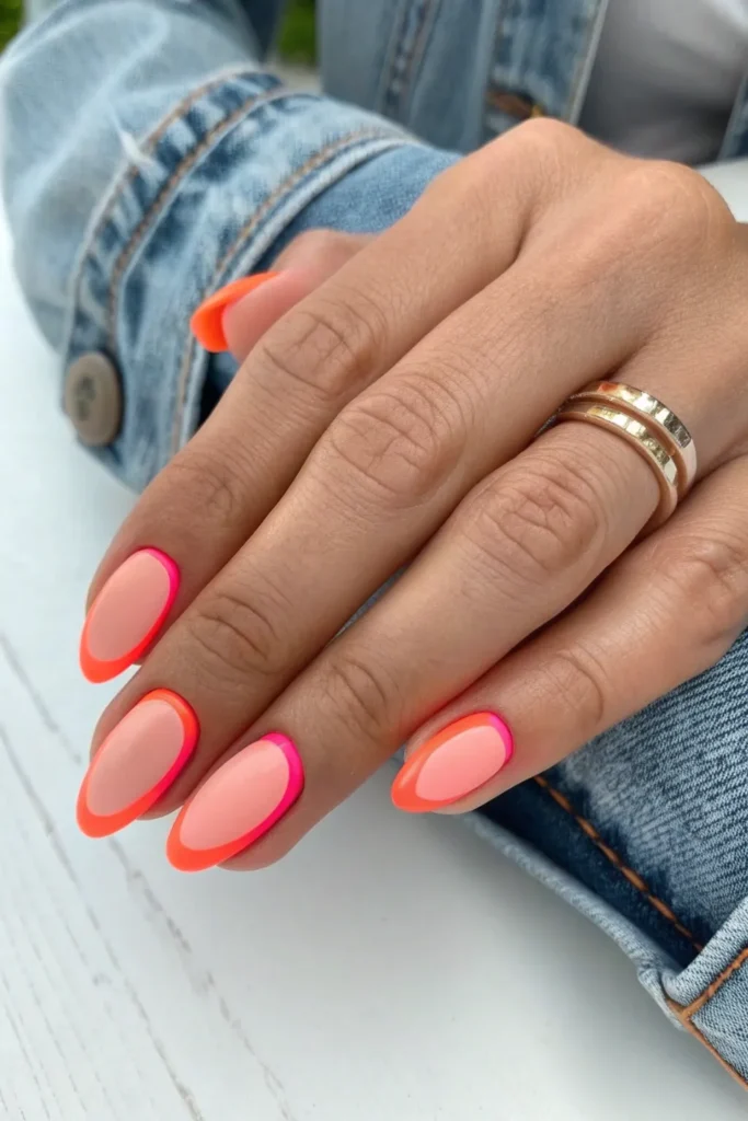 Give your nails a fun upgrade with coral tips instead of the traditional white. It’s bright, playful, and perfect for anyone who wants something trendy yet wearable.