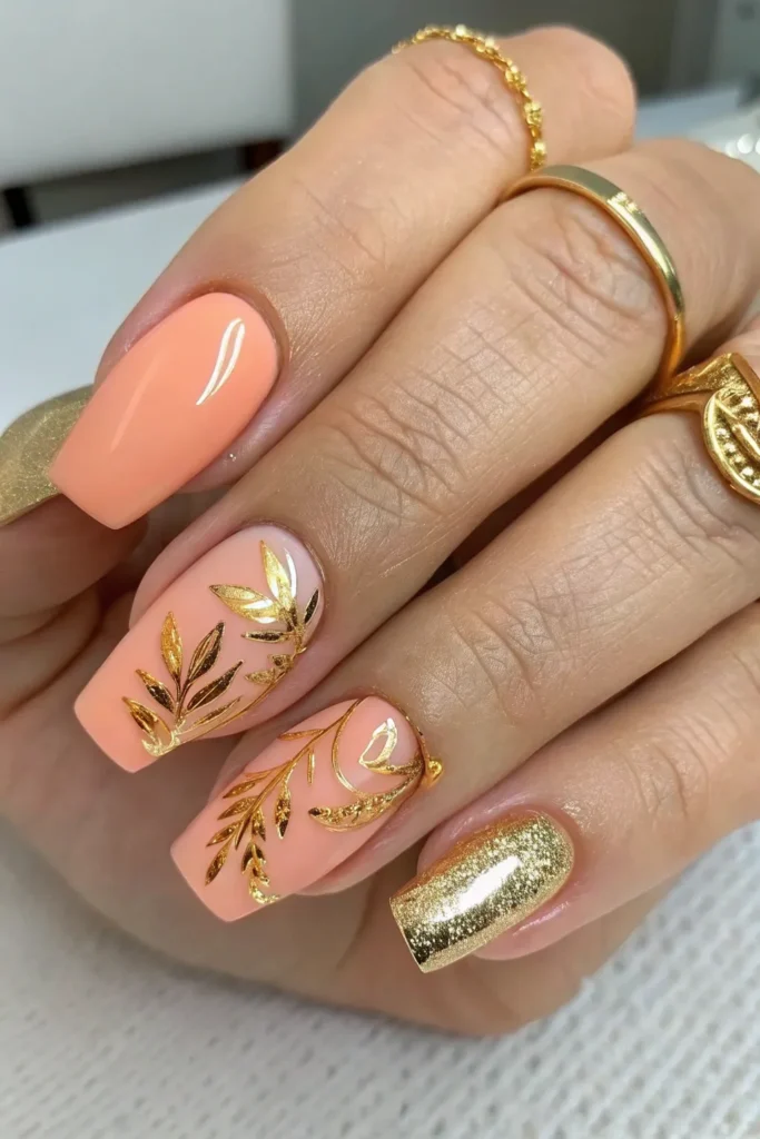 Adding gold foil accents over a peach base instantly elevates the look. It’s elegant, eye-catching, and perfect for special events.