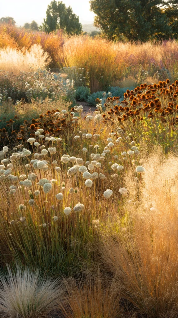 Leave the seed heads standing through the winter rather than cutting the plant back at the season’s end — they catch the frost, hold the snow, and provide food for seed-eating birds through the coldest months of the year with a generosity that is as practically valuable as it is visually beautiful.