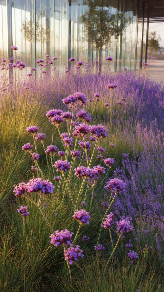 Verbena bonariensis is the low maintenance perennial of see-through garden architecture — the tall, airy, branching plant whose tiny clusters of vivid purple flowers, held on transparent stems of such slender delicacy that the plants behind them remain fully visible through and around them, creates the specific quality of layered, aerial, apparently weightless garden beauty that is the defining visual characteristic of the modern naturalistic planting style.