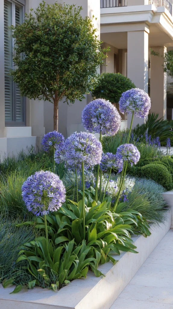 Agapanthus — the African lily of architectural form and extraordinary ornamental presence — is the low maintenance perennial of most dramatic and most instantly recognisable summer impact, its spherical heads of blue, violet, or white tubular flowers held on tall, elegant stems above strap-like mounds of deep green foliage that remain attractive throughout the growing season.