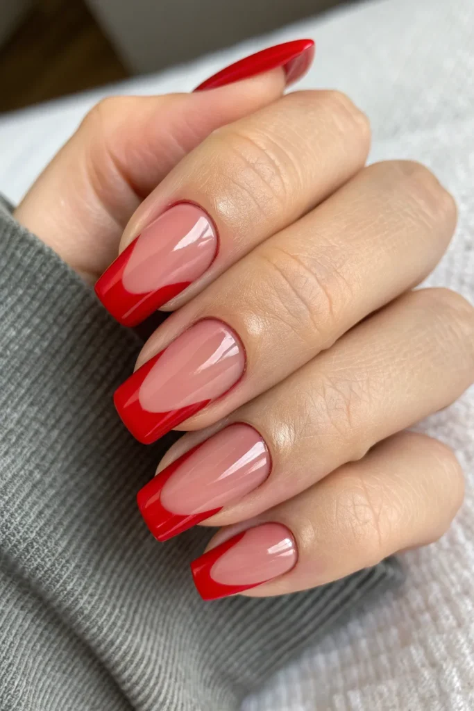 Want something classy with a modern twist? Red French tips offer the perfect blend of elegance and playfulness. Instead of the traditional white tips, the vibrant red creates a fresh, fashionable upgrade. You can keep the base nude, milky pink, or sheer for a clean look. This design is subtle enough for work but fun enough for nights out.