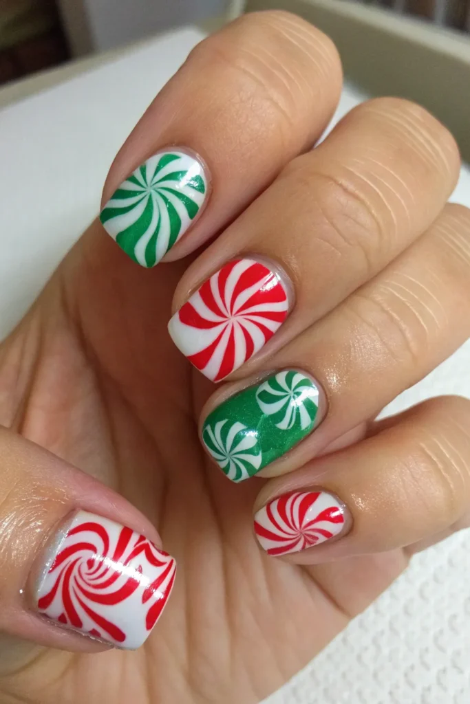 Pink and green aren’t the only sweet combo—these red and green swirls look like peppermint candies straight from Santa’s workshop.
