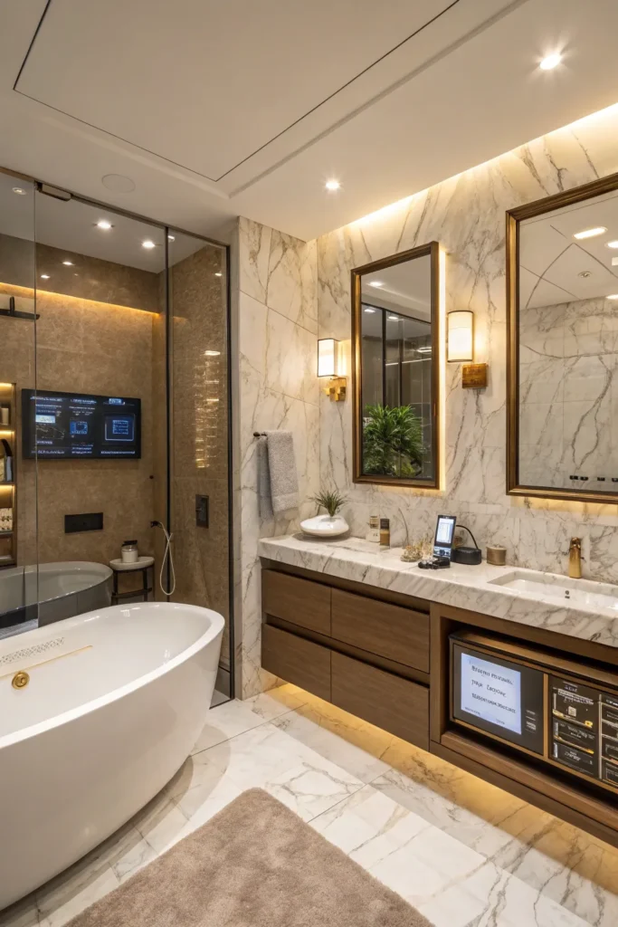 Upgrade your bathroom with modern conveniences like motion-sensor faucets, heated towel racks, and smart toilets.