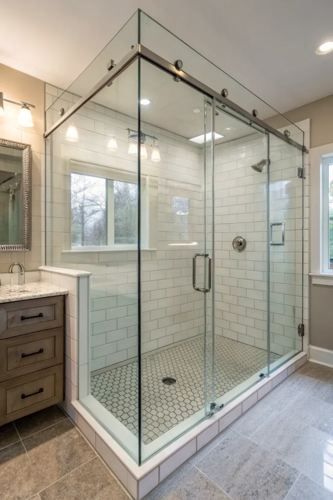 Frameless glass showers bring a luxurious, seamless look and make even small bathrooms feel airy. This design eliminates bulky metal frames, letting the tile work shine.