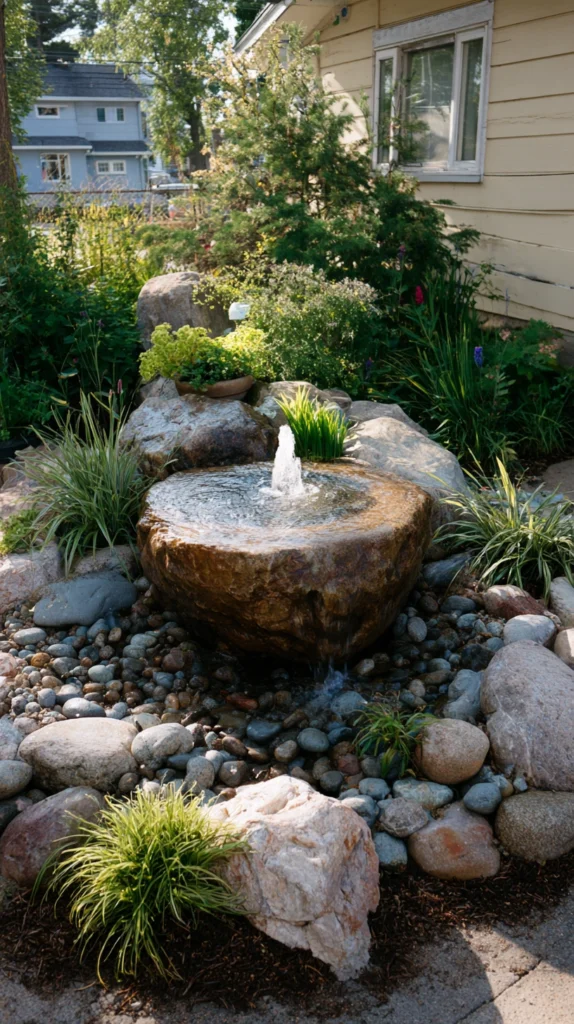 Even the smallest rock garden can be elevated by adding a simple water feature. A compact bubbling boulder, a small ceramic fountain, or a recirculating stream running through a bed of smooth pebbles adds sound, movement, and life to the space. The combination of water and stone is deeply rooted in natural landscapes and brings an instant sense of tranquility that makes even a compact garden feel like a sanctuary.