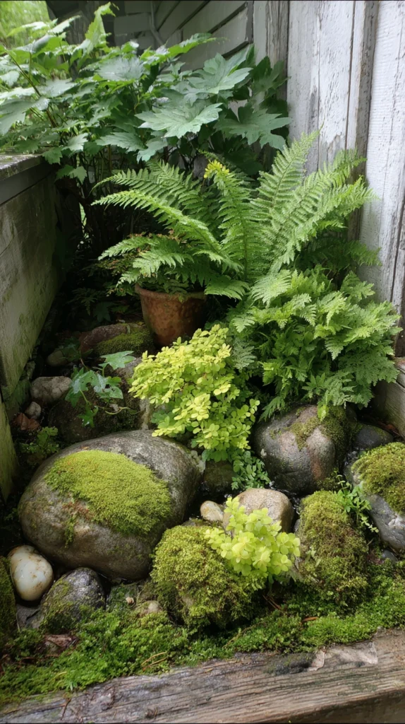 9. Shaded Fern and Moss Rock Garden