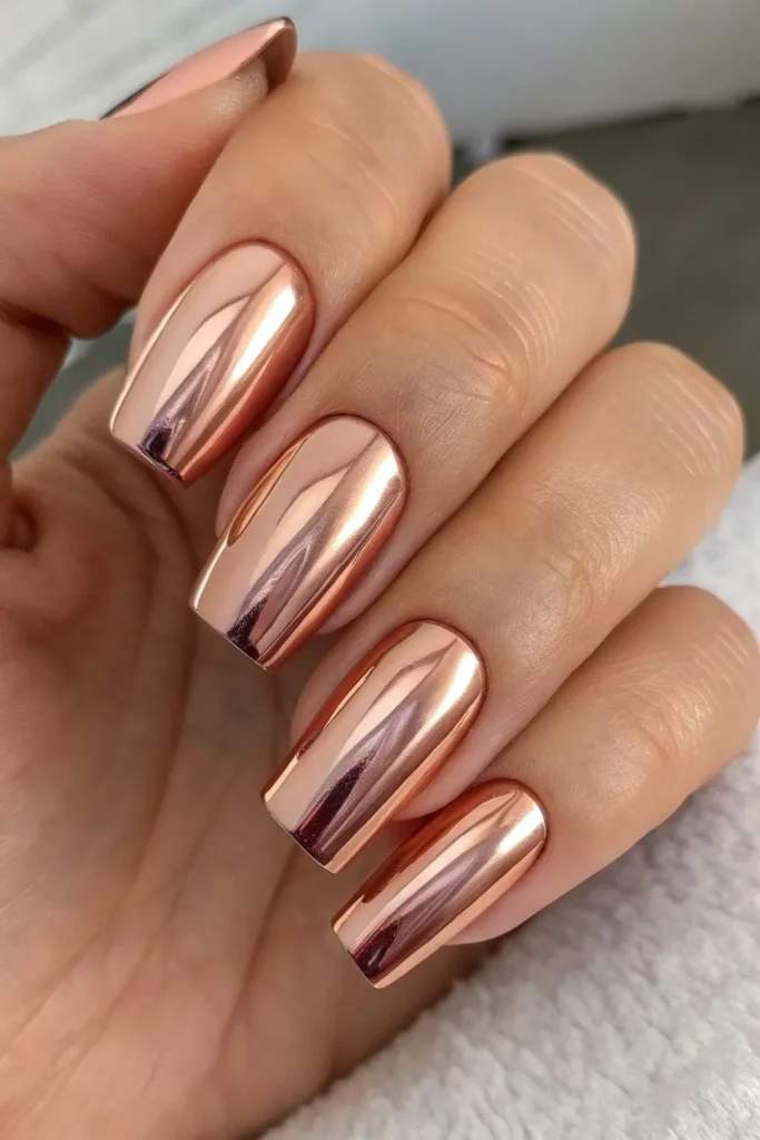 Rose gold nails are a timeless beauty choice—feminine, warm, and versatile. Whether you’re going for a delicate shimmer or a bold metallic statement, this color adds sophistication and warmth to any look. Try one of these gorgeous designs to give your nails a touch of luxury that feels both cozy and effortlessly chic.