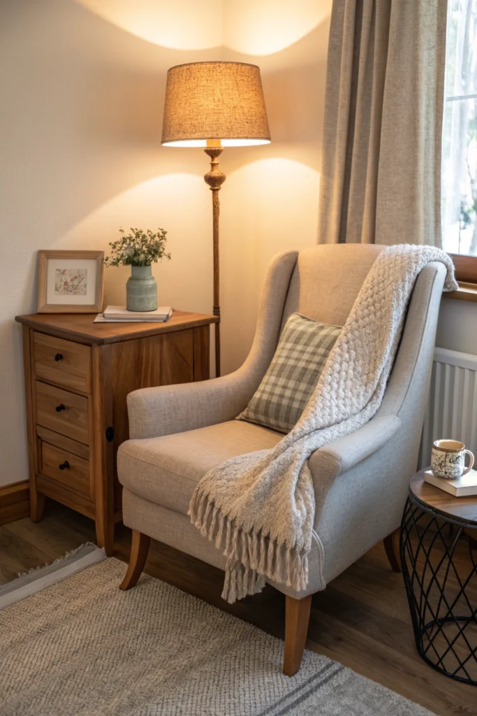 Dedicate a corner of your bedroom to a cozy reading nook embodying hygge principles. Position a comfortable chair near a window, add a small side table for tea or books, include a warm throw and cushions, and ensure adequate lighting through a beautiful floor or table lamp. This dedicated comfort zone transforms your bedroom from purely functional sleeping space into a nurturing personal retreat.