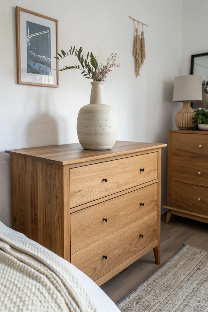 A hand-thrown ceramic vase displays subtle irregularities that mass-produced alternatives lack. A woven wall hanging adds texture and artistry while supporting traditional crafts. A hand-carved wooden bowl brings organic beauty to your dresser.