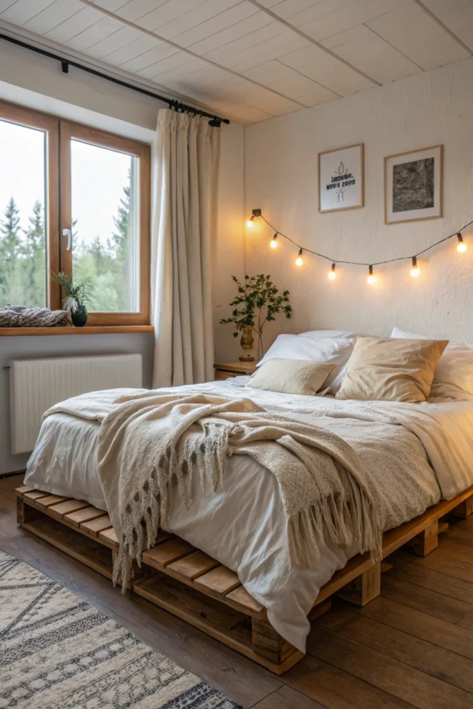 Layer window treatments for flexibility—sheer linen panels for daytime privacy that still welcome light, combined with heavier linen or cotton curtains for complete darkness and insulation during sleep. Avoid overly structured or formal treatments; instead, embrace the casual, lived-in quality of natural fabrics that drape organically. Wooden curtain rods in light finishes reinforce the natural material palette.