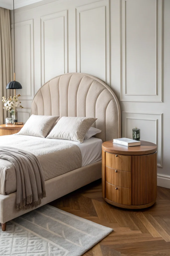 Incorporate furniture and objects with soft, rounded edges rather than exclusively angular pieces. Curved headboards, round bedside tables, oval mirrors, and organic sculptural objects introduce gentle, welcoming shapes that feel embracing rather than harsh. This subtle shift from purely geometric forms to more organic silhouettes dramatically impacts a room’s emotional temperature.