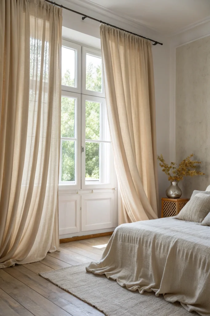 Windows deserve special attention in Scandinavian bedrooms. While maximizing natural light remains important, appropriate window treatments add essential warmth and privacy. Choose linen curtains in natural, undyed tones that diffuse light beautifully while maintaining airiness. Floor-length curtains that puddle slightly create luxurious, welcoming impressions, especially when hung from ceiling height to elongate walls visually.