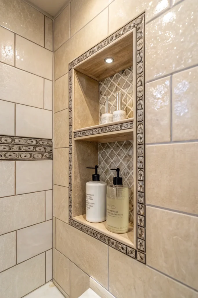 One of the easiest ways to make a shower niche look built-in is by using the same tile inside the niche as on the shower walls. This continuity eliminates visual breaks and makes the niche feel like it was always part of the original structure.