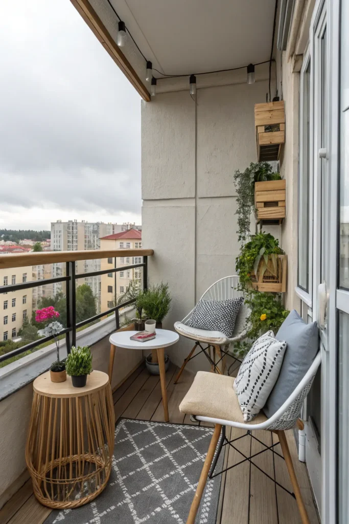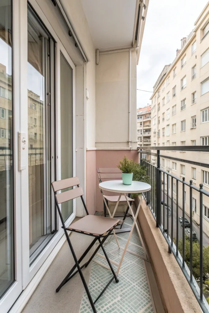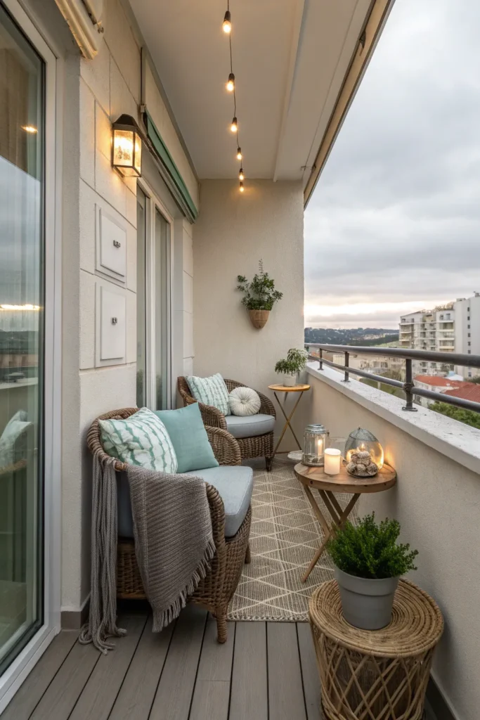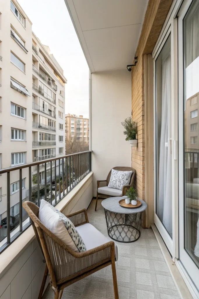 Small balconies benefit from a “less is more” approach when it comes to decor. A few well-chosen accents—such as a lantern, a small tray, or decorative cushions—can add personality without overwhelming the space.