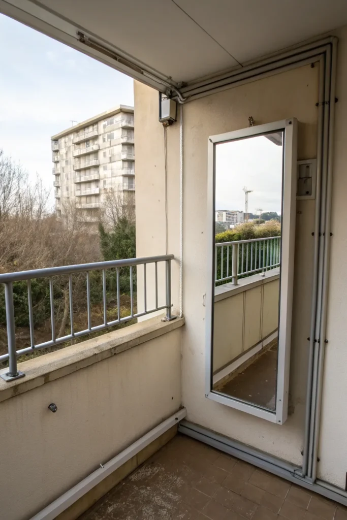 Mirrors aren’t just for interiors—they can work wonders on small balconies too. A strategically placed outdoor-safe mirror can reflect light and greenery, making the space feel larger and brighter.