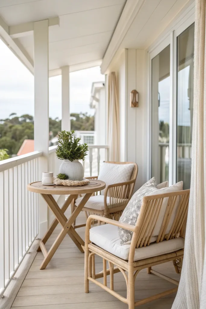 This doesn’t mean your balcony has to be boring. You can layer in color through cushions, plants, or small decor accents while keeping the base elements light and cohesive. This balance keeps the space visually open while still feeling stylish and personal.