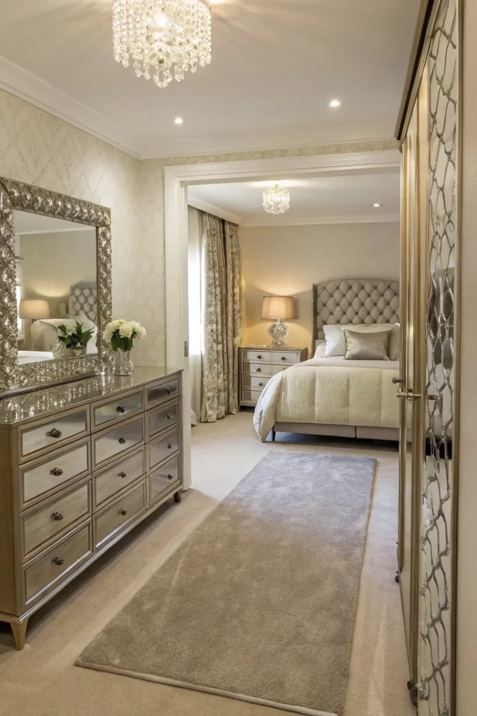 Mirrors are essential in small bedroom layouts. Place a large mirror opposite a window to reflect light or next to the bed to visually expand the space. Mirrored closets or wardrobe doors also make rooms feel bigger without taking up extra space. They give the illusion of depth, making your layout feel more spacious and airy.