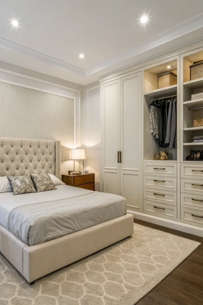 When space is limited, every piece of furniture should earn its place. A bed with built-in drawers, a bench with hidden storage, or a desk that doubles as a vanity are excellent choices. These dual-purpose pieces create a more efficient layout and reduce visual clutter. Fewer pieces that do more is the key to a smart small bedroom design.