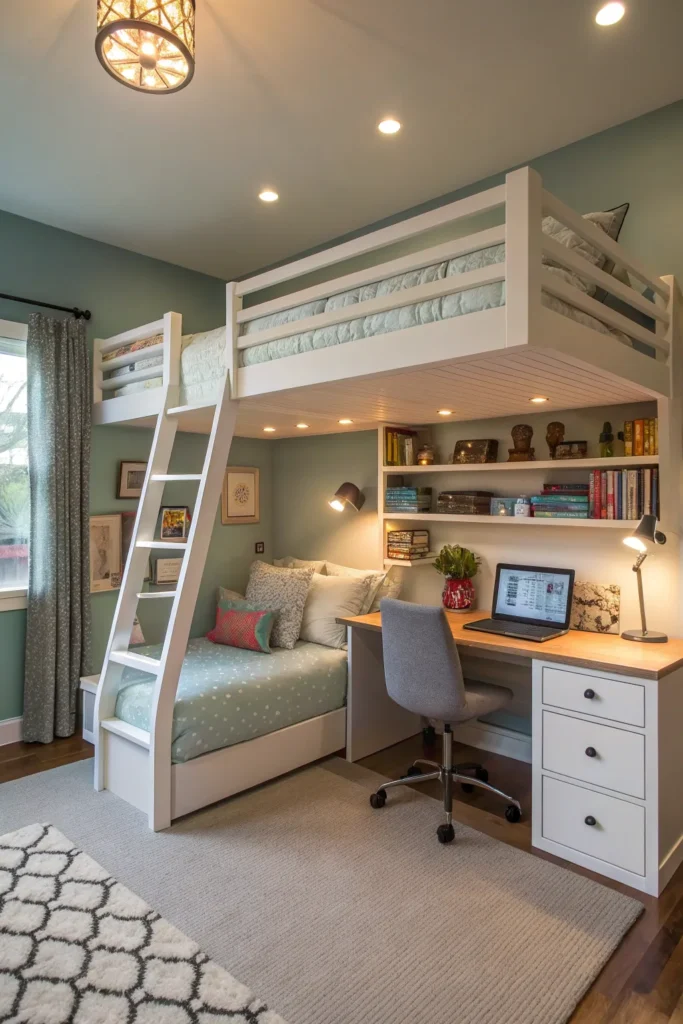 For very small rooms, a loft-style bed can transform the space. By raising the bed, teens gain room underneath for a desk, seating area, or storage. To keep it cozy, use warm bedding, string lights around the bed frame, and soft curtains or panels for privacy. This style is both practical and fun, giving teens a sense of independence while maximizing every inch.