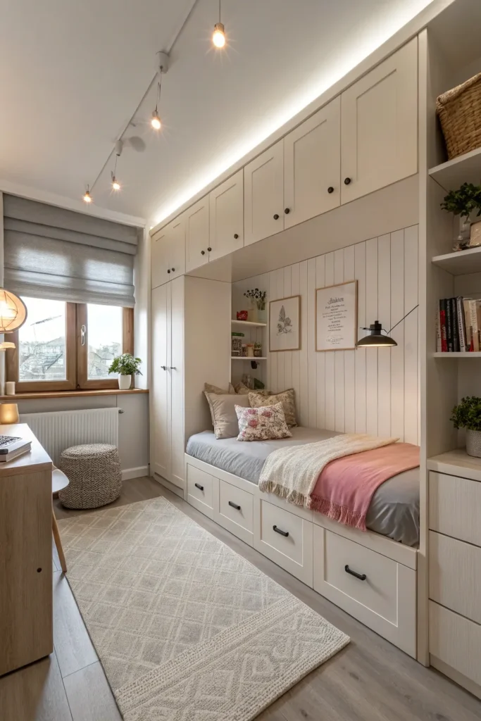 Below are 15 cozy small bedroom styles for teens, each offering unique ideas to maximize space while creating a warm and inviting atmosphere.