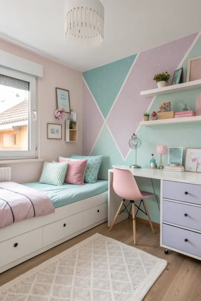 Pastel colors can make a small bedroom feel light, cheerful, and cozy at the same time. Soft shades of blush, lavender, mint, or baby blue work well for walls, bedding, or accents. To avoid a cluttered look, keep furniture simple and neutral. Cozy details like plush pillows, a fuzzy rug, and warm bedside lighting help balance the sweetness of pastel tones with comfort.