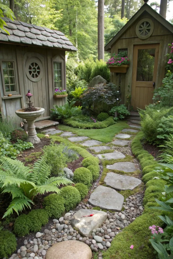 A simple winding gravel path instantly adds storybook charm, guiding you through your garden like a secret walk. In a small space, even a short curved path creates depth and makes the area feel bigger and more magical.